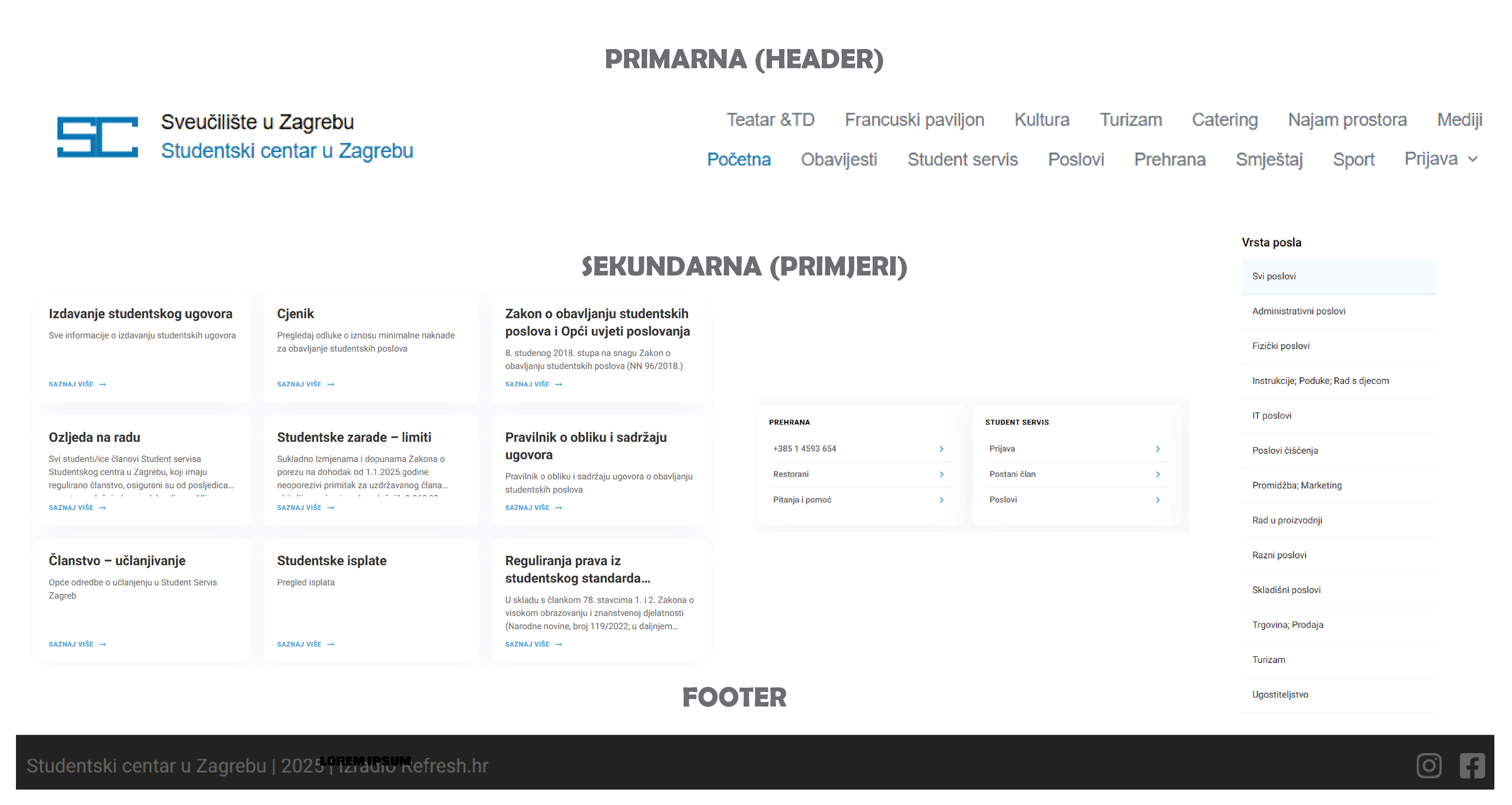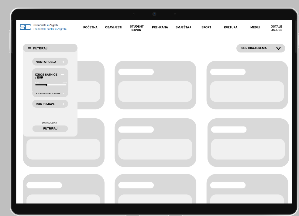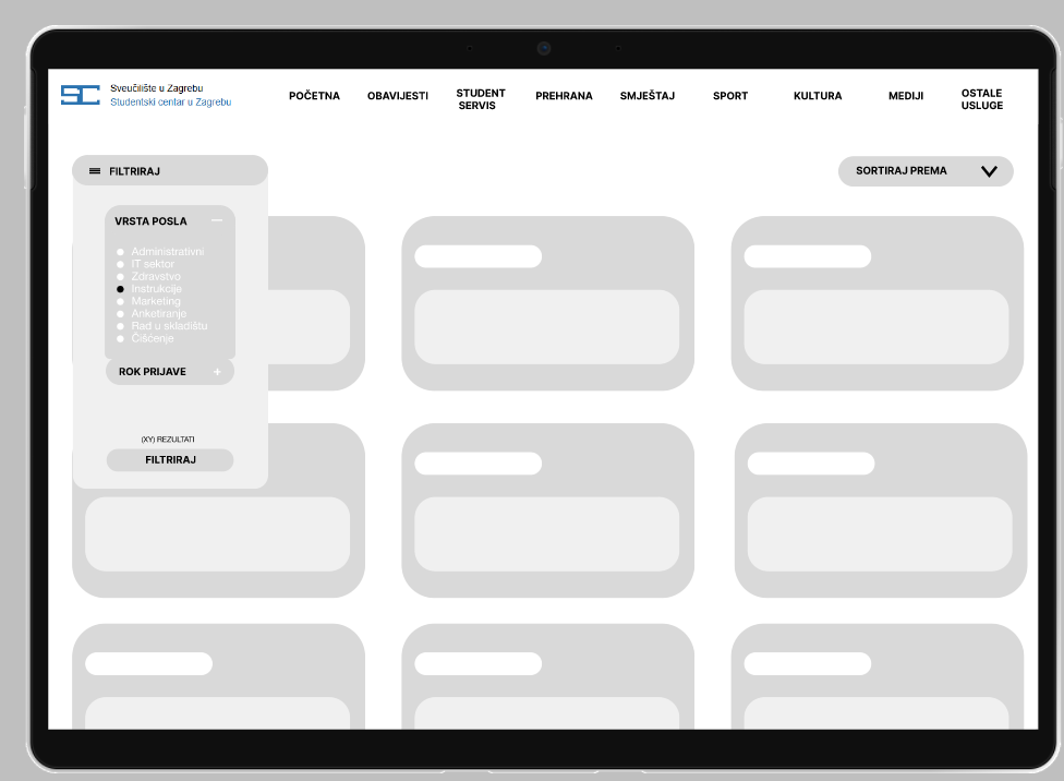 this project was developed as a part of the web design 1 course at my university. the goal was to redesign the INFORMATION ARCHITECTURE (IA) AND THE "jobs" section on the website studentski centar zagreb (SC).