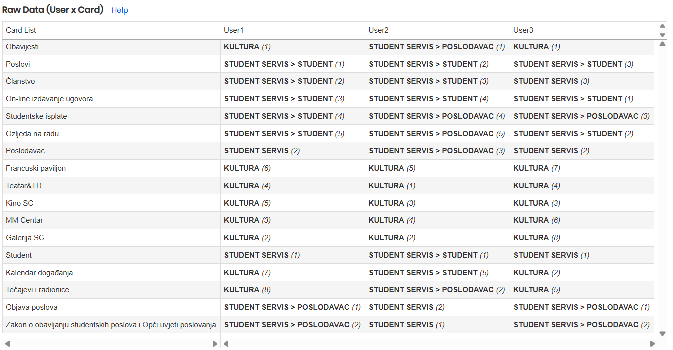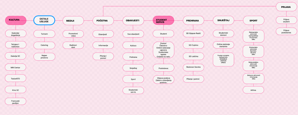 REDUDANT CATEGORIZATION: THE PAIN PONIT WAS THE SPLIT BETWEEN "STUDENT SERVIS" AND "POSLOVI" (JOBS). THESE CATEGORIES WERE TOO SIMILAR, LEADING TO CONFUSION AND UNNECESSARY CLICKS.